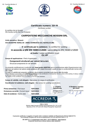 CERTIFICAZIONE AZIENDALE PER LA GESTIONE DEI PRODOTTI SALDATI PER IL SETTORE FERROVIARIO